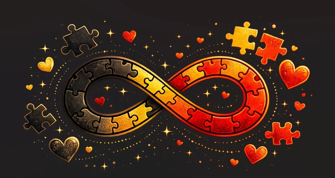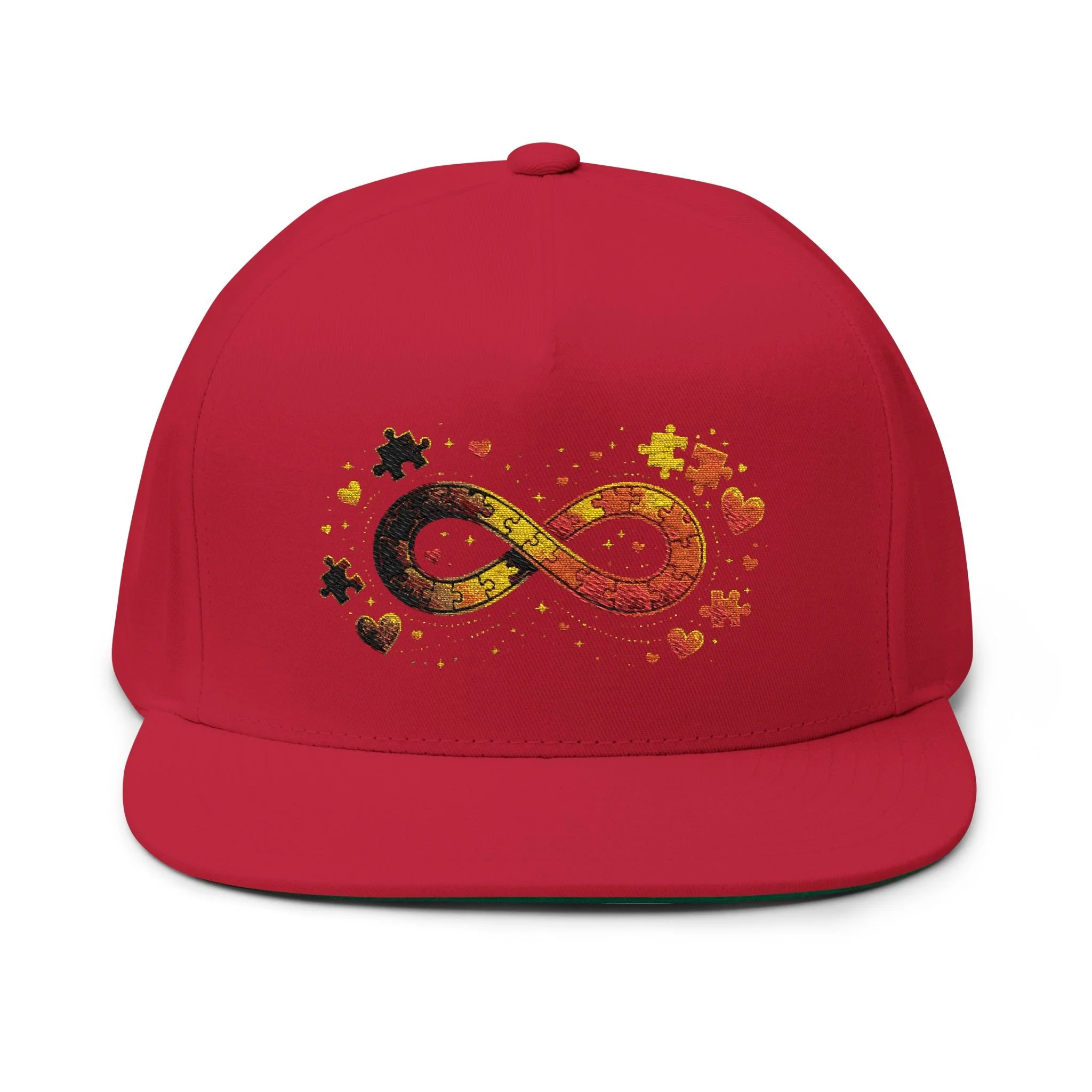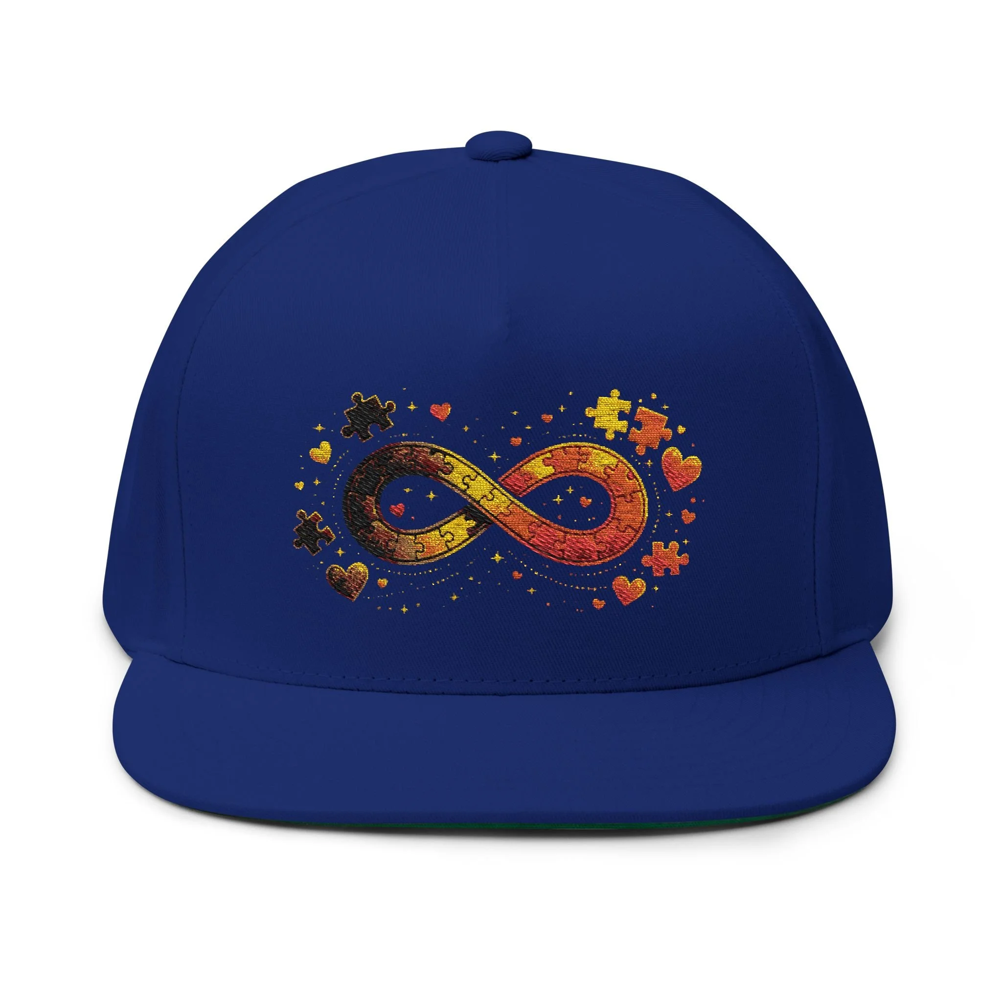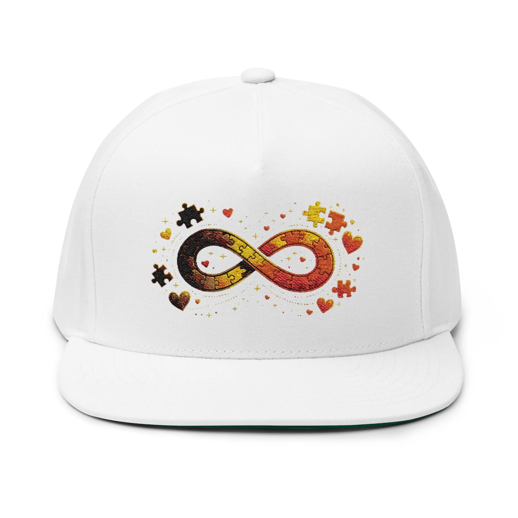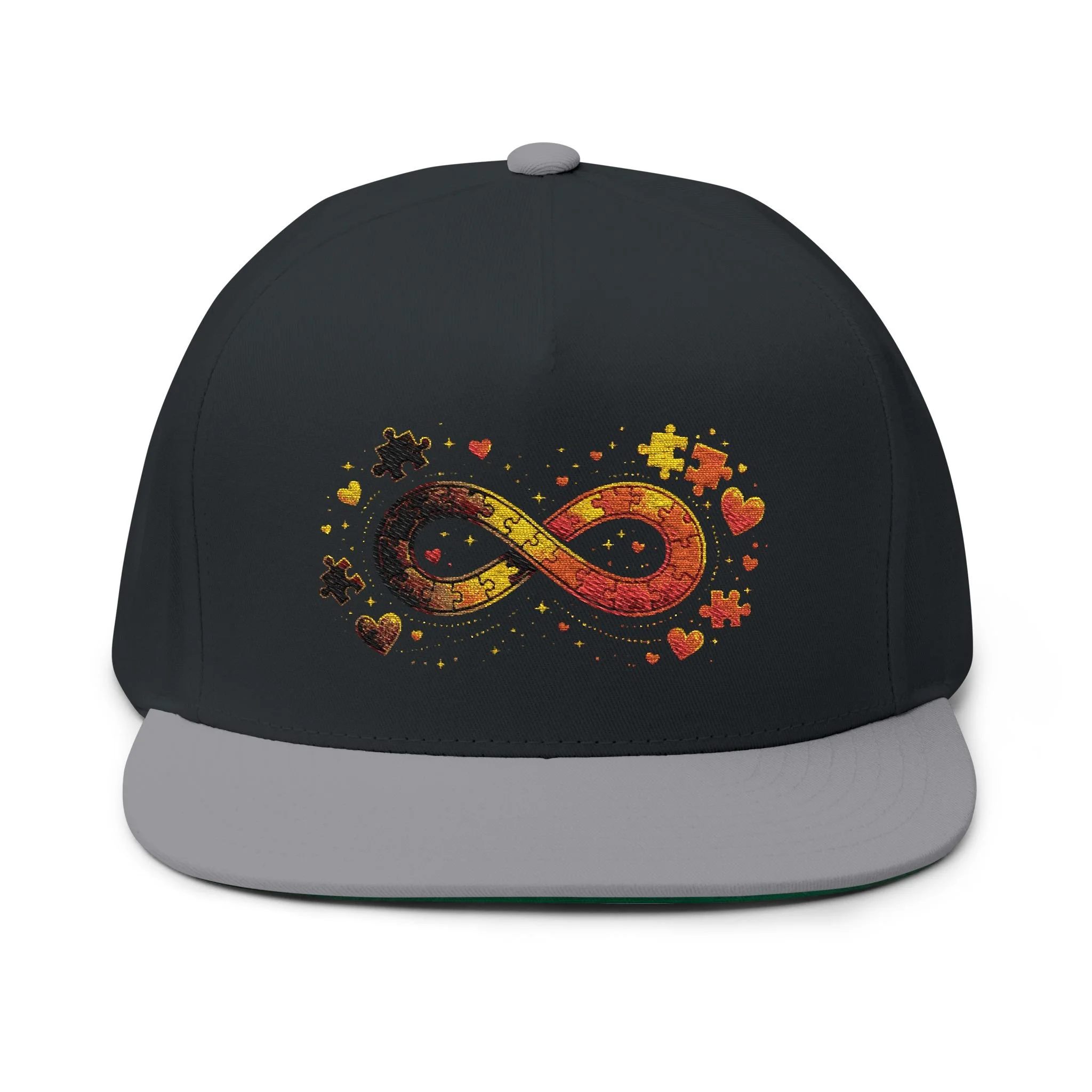 Autism Infinity Puzzle Flat Bill Cap – Embroidered Heart & Puzzle Design