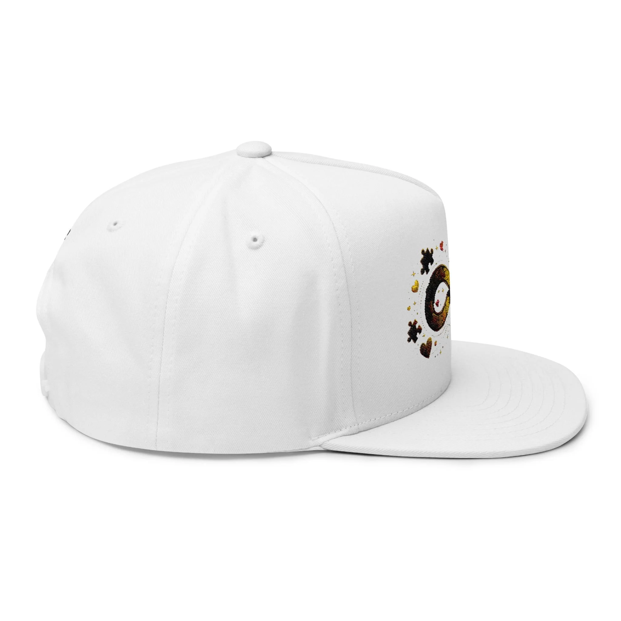 A structured, high-profile flat bill cap embroidered with a vibrant infinity design made of puzzle pieces and scattered hearts — a subtle, heartfelt symbol of connection and continuity. The cotton twill gives the cap a lived-in, vintage feel while the green undervisor adds a touch of retro authenticity. Breathable sewn eyelets and an adjustable snapback ensure a comfortable, secure fit for everyday wear. This cap sits confidently at the front of casual outfits, quietly signaling warmth, commitment, and a playful, nostalgic spirit.