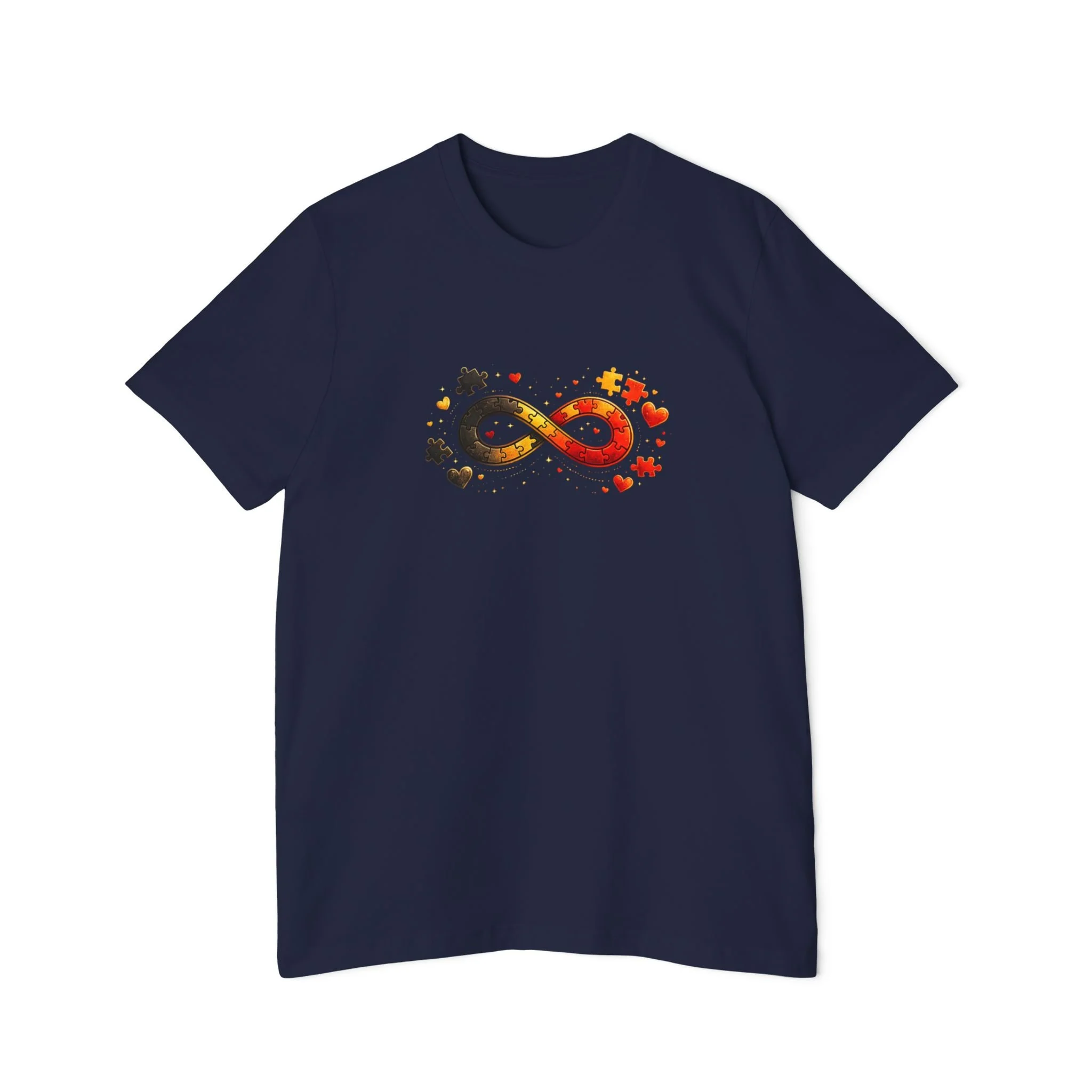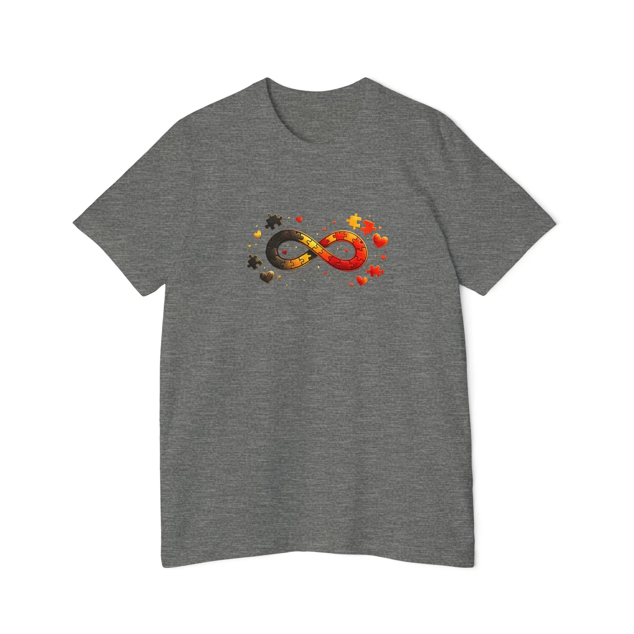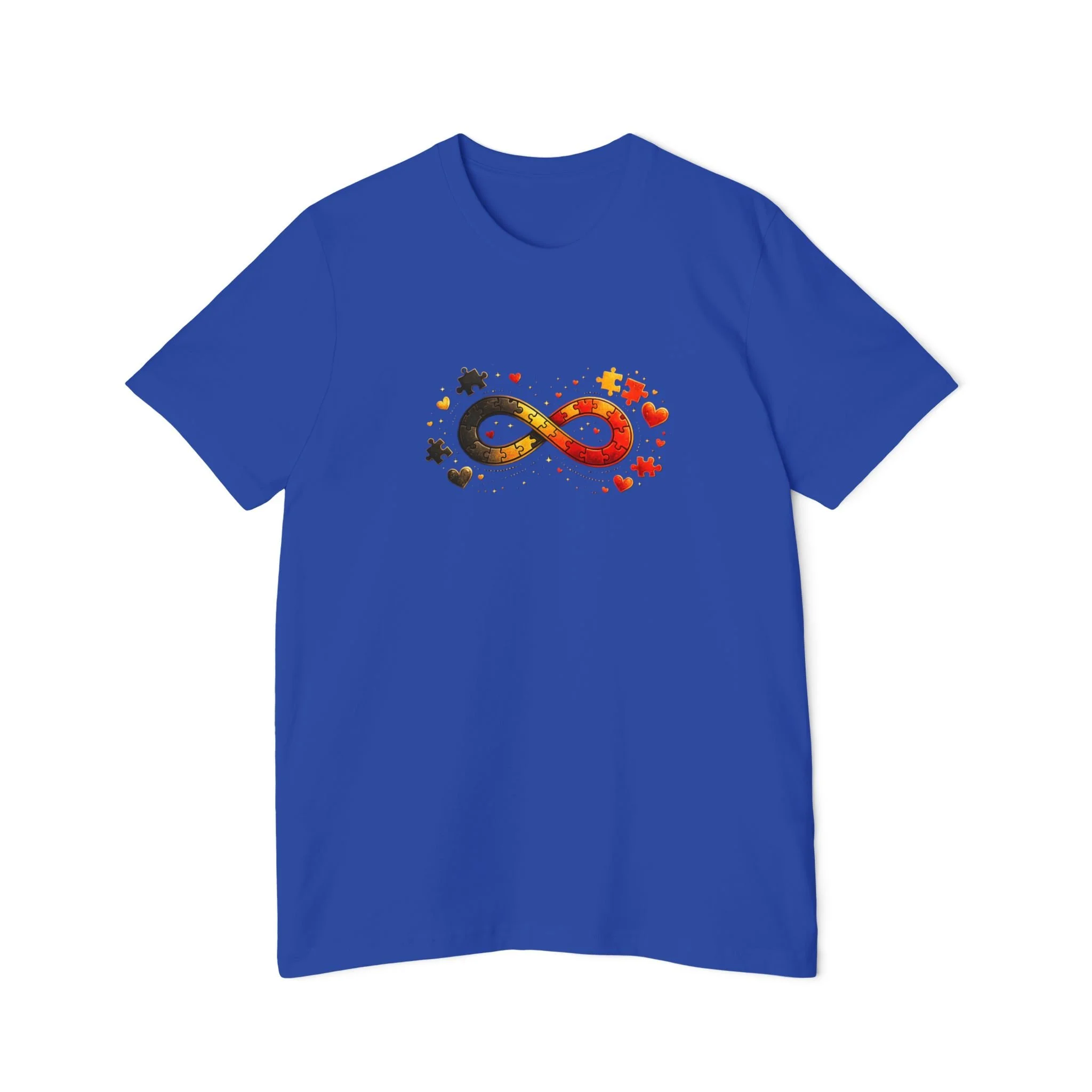 A cozy, everyday tee that quietly celebrates neurodiversity with a warm, autumnal twist. The front shows a colorful infinity symbol composed of scattered maple leaves and soft star accents — small details that catch the eye without shouting. On the back, the curved “Autism Rocks” text and established date feel like a clubhouse crest: personal, proud, and low-key. Lightweight and breathable, this shirt layers easily under a jacket or stands on its own for crisp fall walks, casual meetups, or awareness events. It’s designed for people who want to wear their values with subtlety and warmth — supporters, self advocates, and family members who appreciate thoughtful design and everyday comfort.