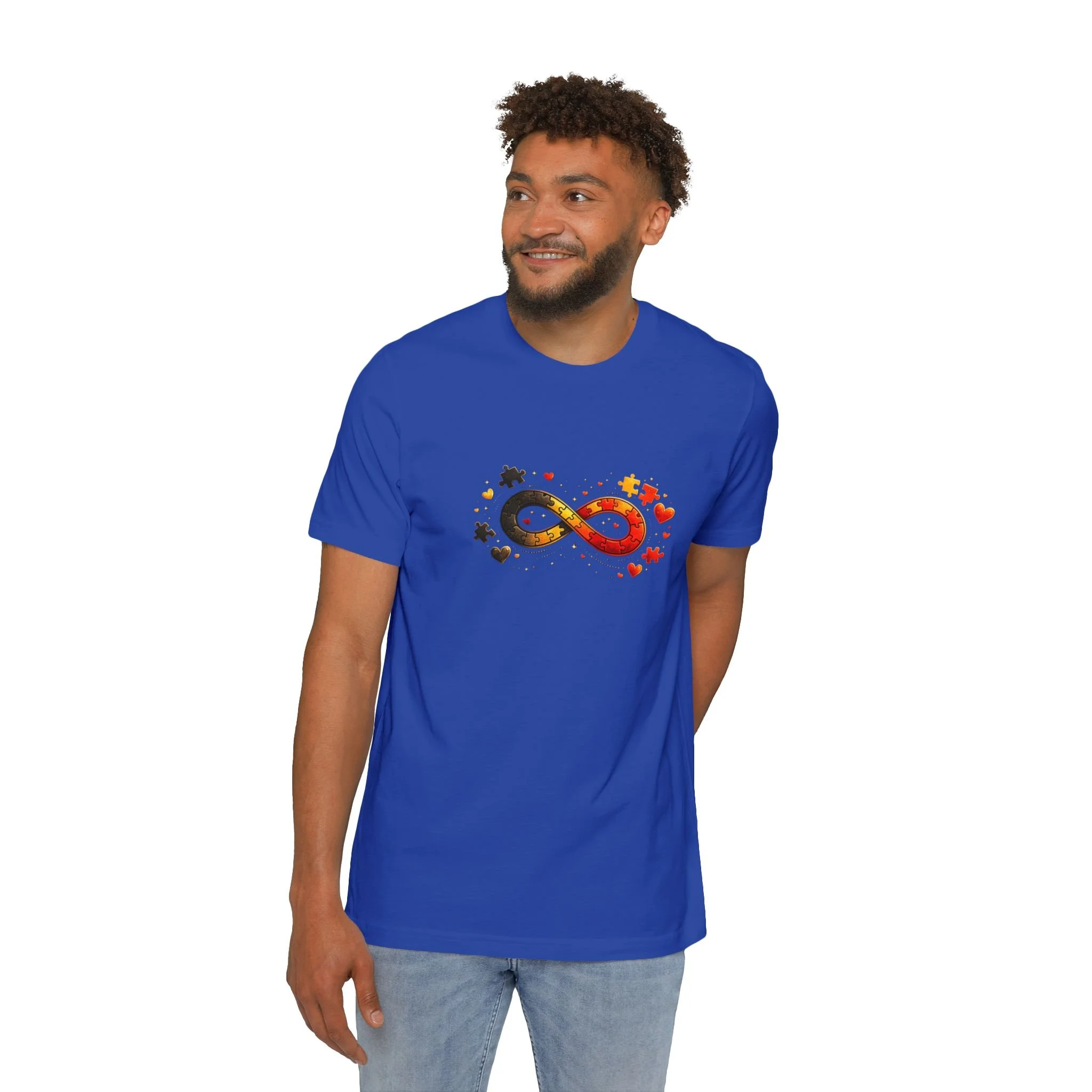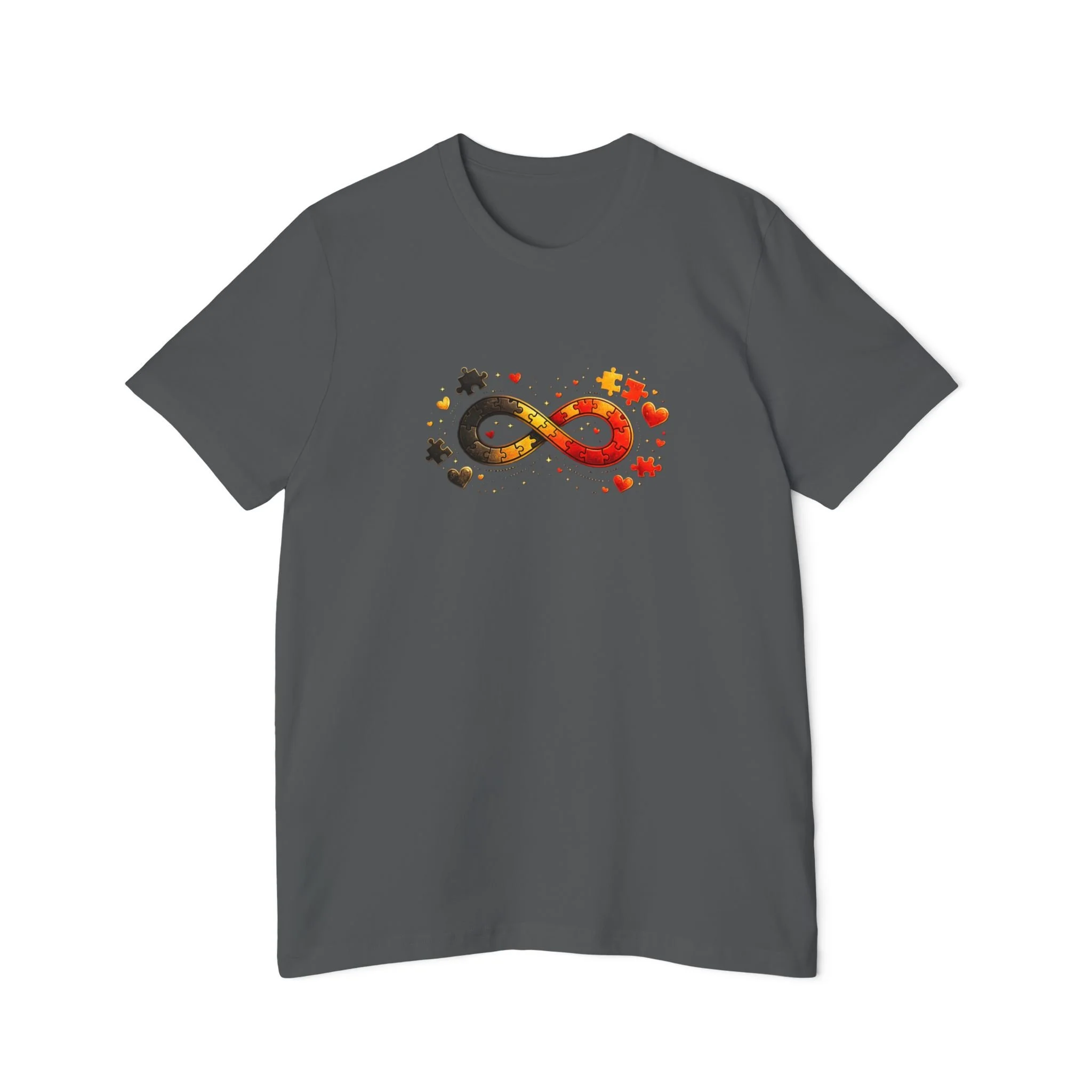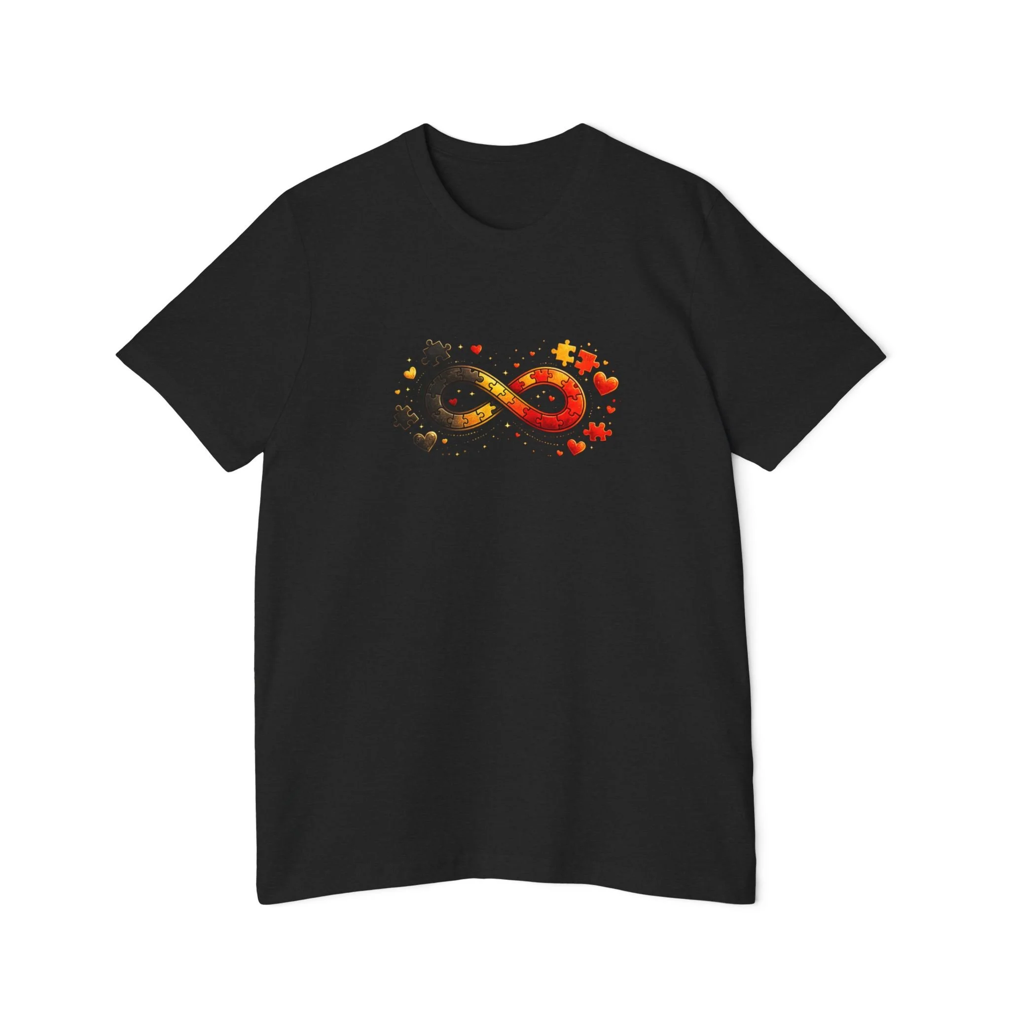 A cozy, everyday tee that quietly celebrates neurodiversity with a warm, autumnal twist. The front shows a colorful infinity symbol composed of scattered maple leaves and soft star accents — small details that catch the eye without shouting. On the back, the curved “Autism Rocks” text and established date feel like a clubhouse crest: personal, proud, and low-key. Lightweight and breathable, this shirt layers easily under a jacket or stands on its own for crisp fall walks, casual meetups, or awareness events. It’s designed for people who want to wear their values with subtlety and warmth — supporters, self advocates, and family members who appreciate thoughtful design and everyday comfort.