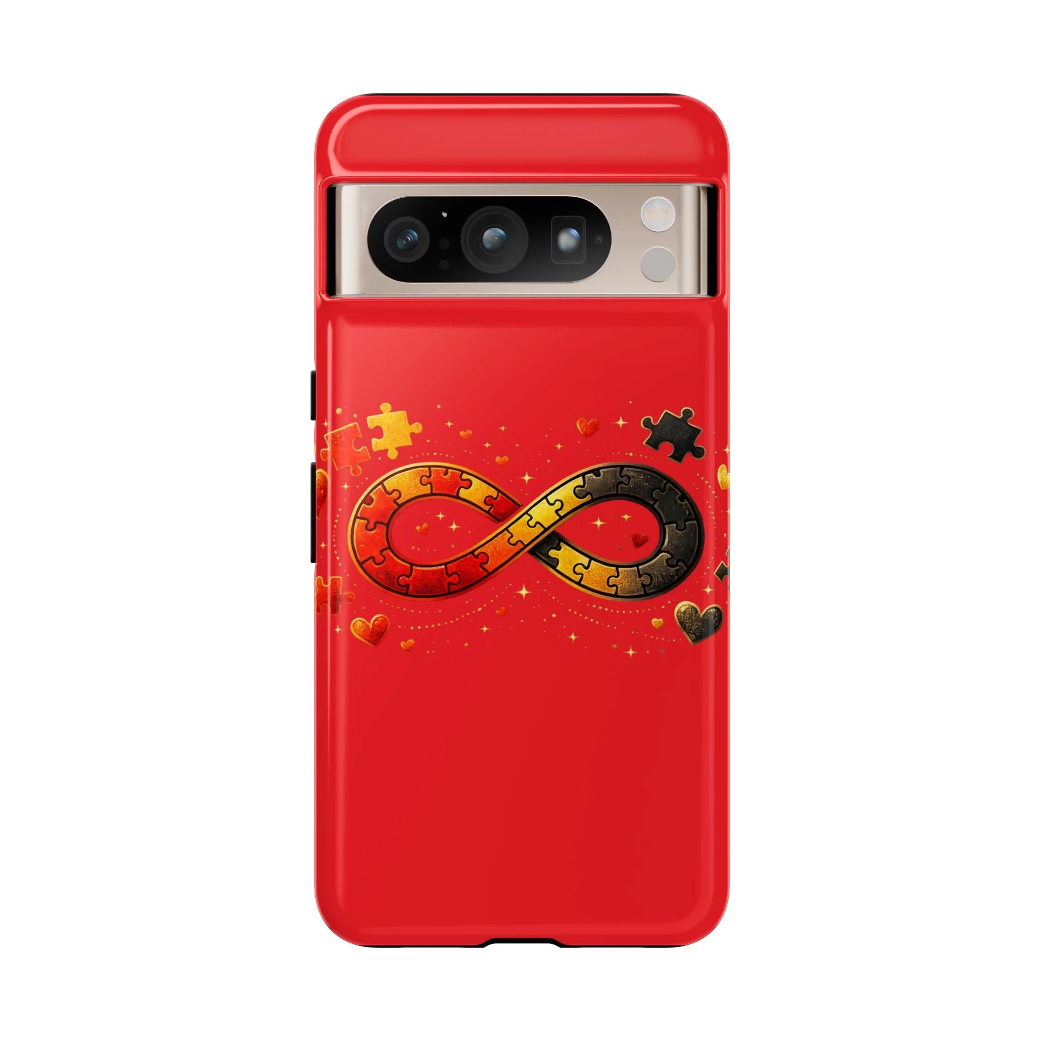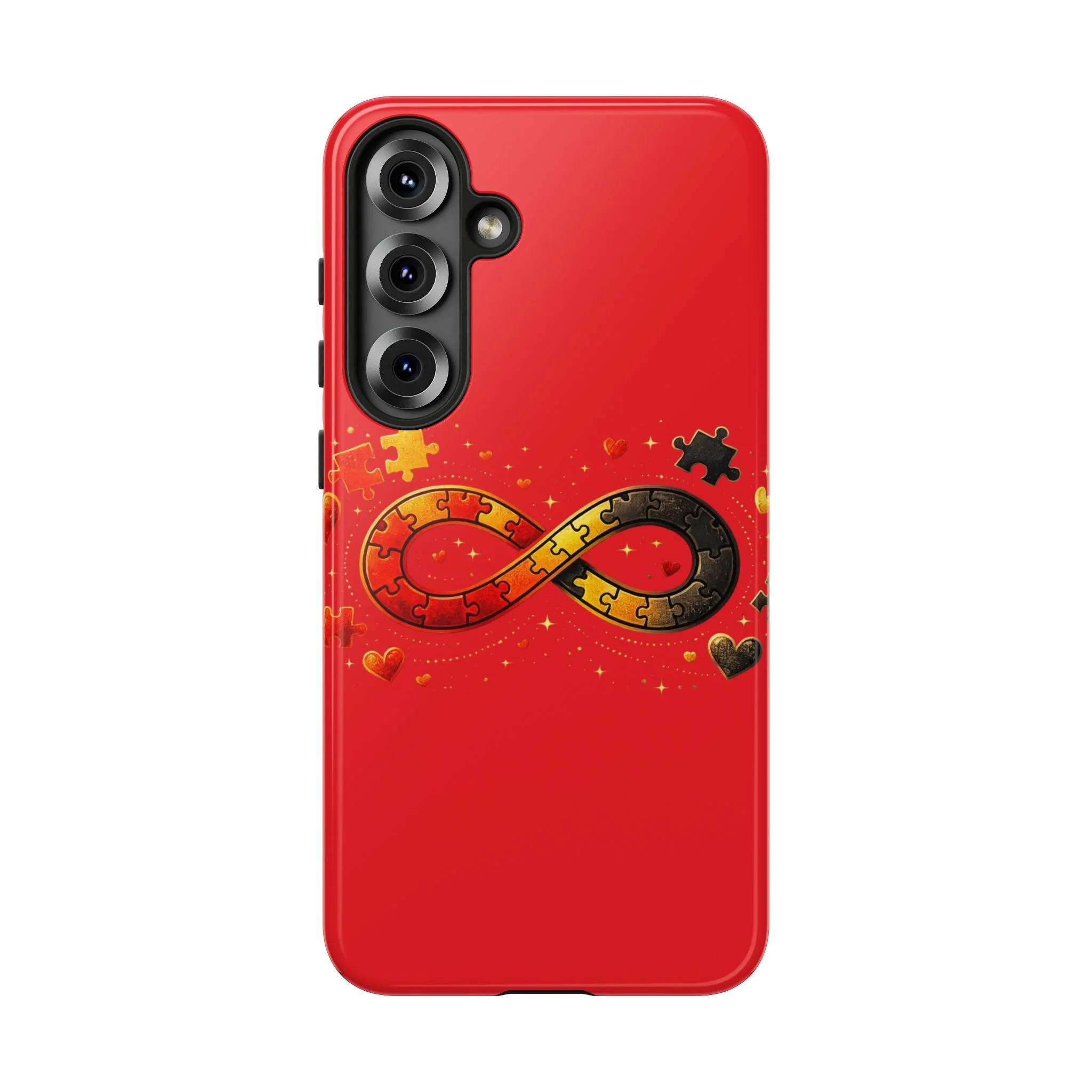 Autism Puzzle Infinity Phone Case — Red & Gold Symbol Protective Cover